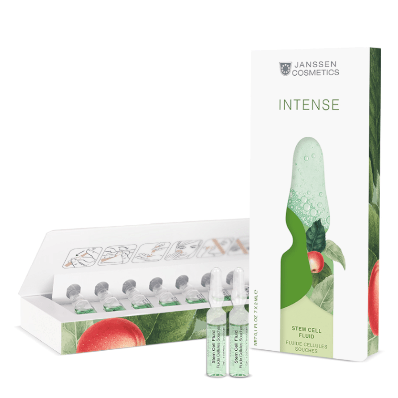 This premium skin care set features 7 Stem Cell Fluid Ampoules accompanied by a Derma-stamp, designed for intensive skin rejuvenation and hydration. Infused with plant stem cells derived from a special Swiss apple variety, these serum ampoules are formulated to stimulate skin regeneration, deeply moisturize, and improve skin texture. This treatment is particularly effective for lifting and smoothing the skin, offering a noticeable rejuvenation from within.
