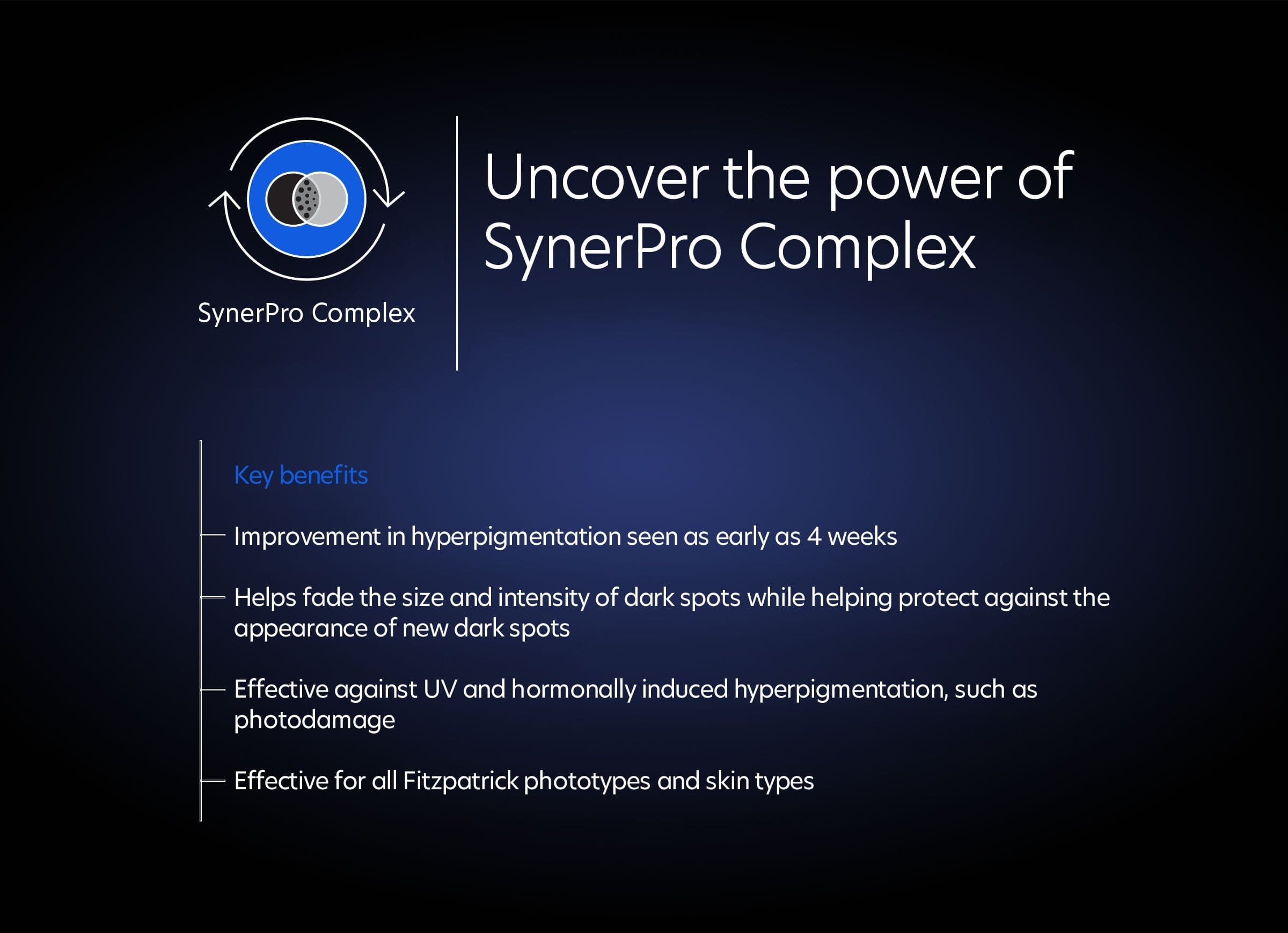 - Helps fade the size and intensity of dark spots while helping protect against the appearance of new dark spots