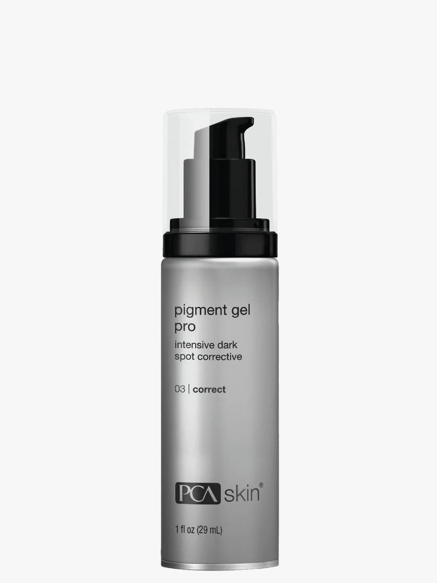 PCA Skin Pigment Gel PRO . Experience a visibly dramatic reduction in the appearance of stubborn discoloration. This advanced, dermatologically tested corrective helps fade the size and intensity of dark spots while helping protect against the appearance of new dark spots. Its industry-leading, hydroquinone-free formula is powered by the proprietary SynerPro Complex, which uses multiple modes of action to effectively target discoloration for all skin types and tones. The result is skin that appears more even and bright with continued use.
