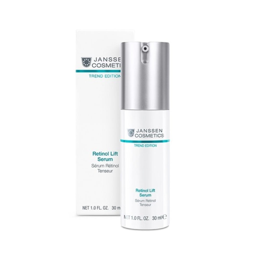 Retinol Lift Serum by Janssen Cosmetics, offered in a 30 ml package, is a potent anti-aging serum infused with high-quality retinol. This serum is specifically designed to combat signs of aging, including wrinkles, age spots, and uneven skin tone, promoting a rejuvenated and youthful complexion.